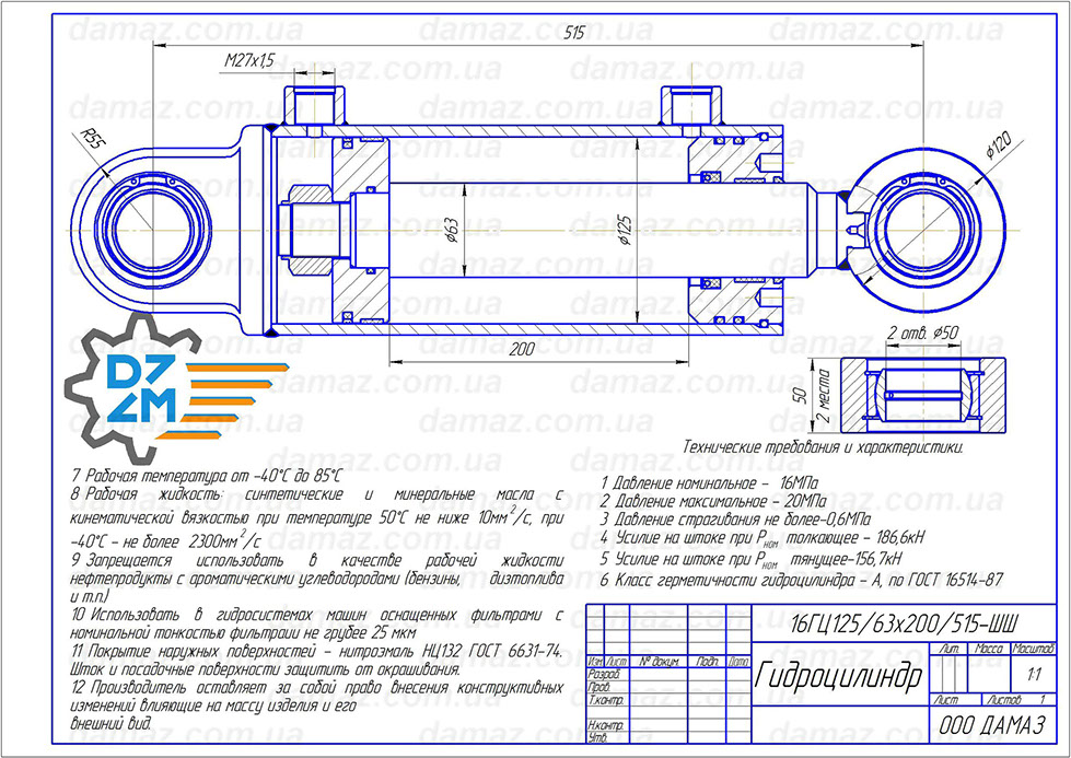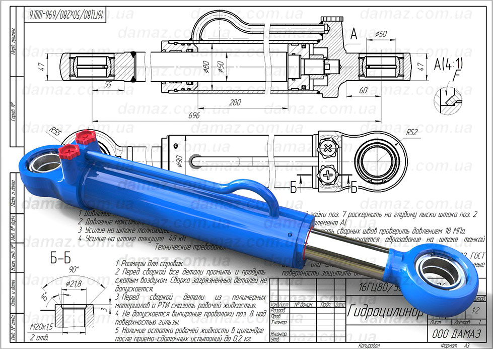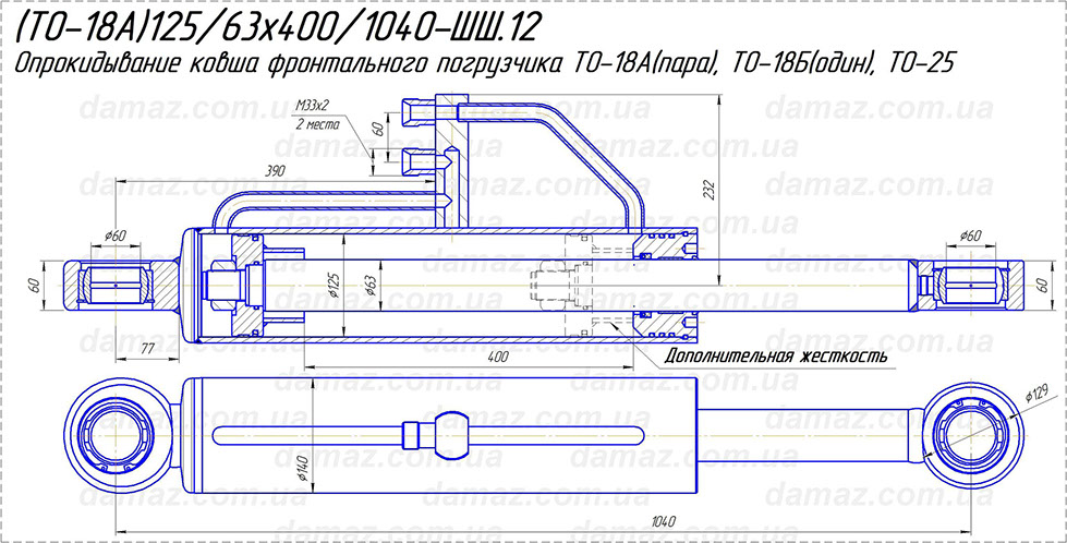 Гидроцилиндр подъема ковша фронтального погрузчика Т0-18А, Т0-25
