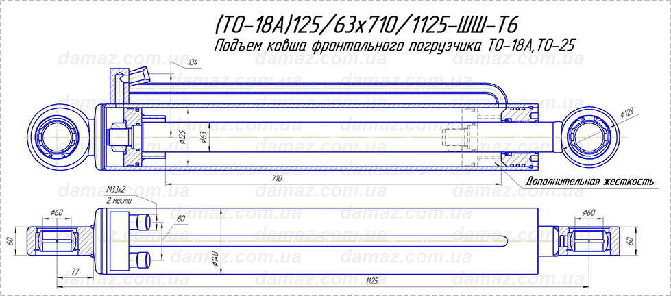Гидроцилиндр подъема ковша фронтального погрузчика Т0-18Б